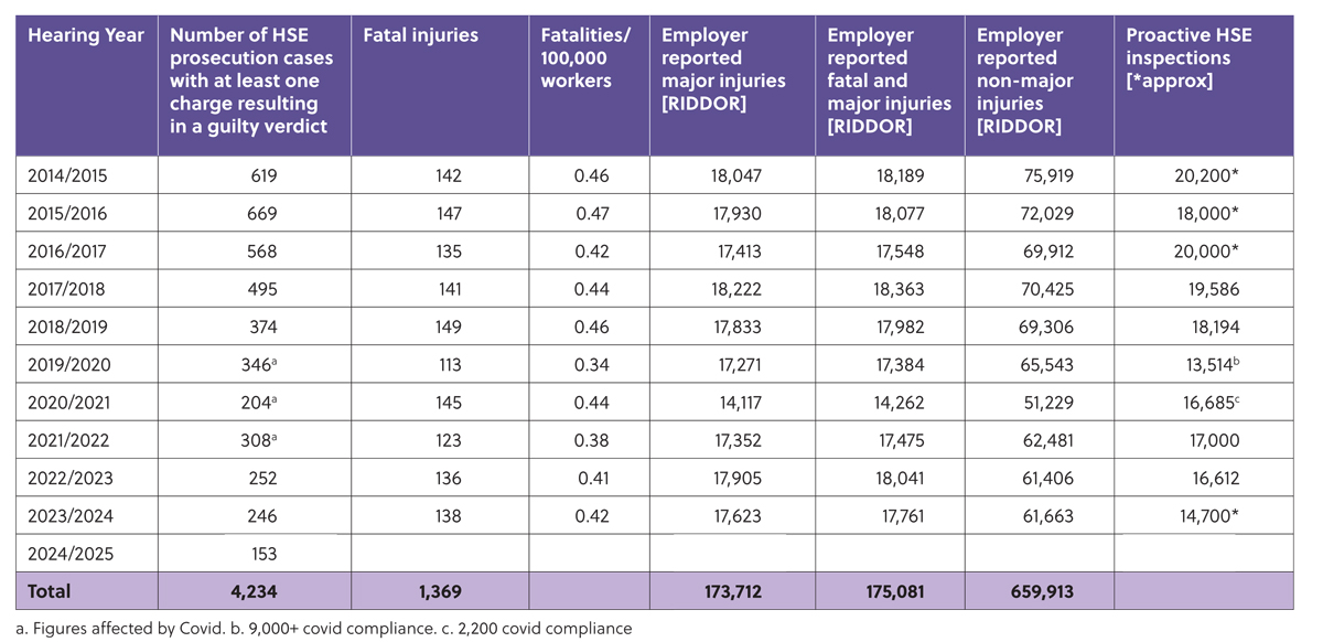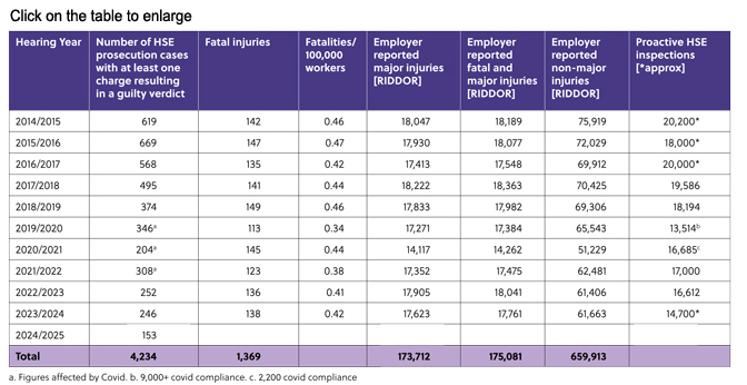 A Hazards freedom of information request to HSE found in both 2014/15 and 2015/16 there were over 600 successful prosecutions each year. In 2022/23 and 2023/24 this had fallen to fewer than 300 each year.