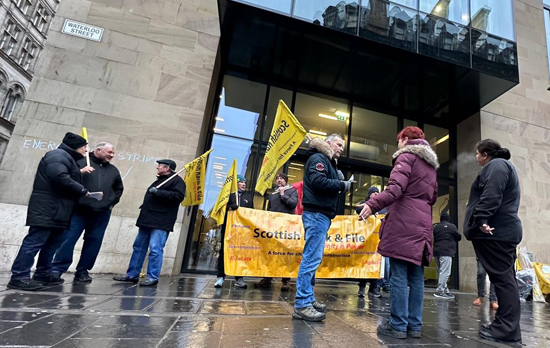 The three were sacked by Kirby Group Engineering on 23 December 2022, leading to a protest outside SSE’s Glasgow headquarters. At the time they were on the verge of finalising a union recognition agreement.