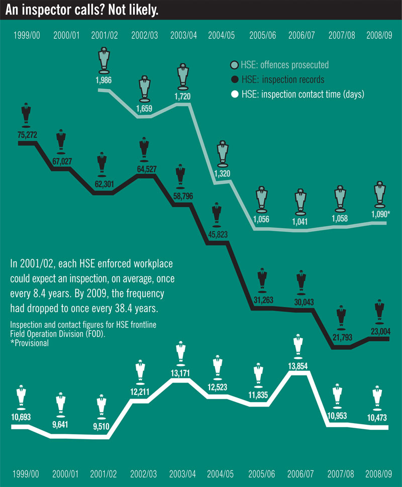 HSE inspection and enforcement drops off the chart. Hazards issue 110, April-June 2010