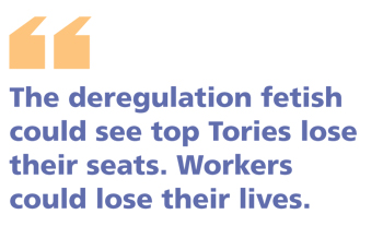Top Tory MPs could lose their seats and the government its majority if its deregulatory fetish continues unabated.