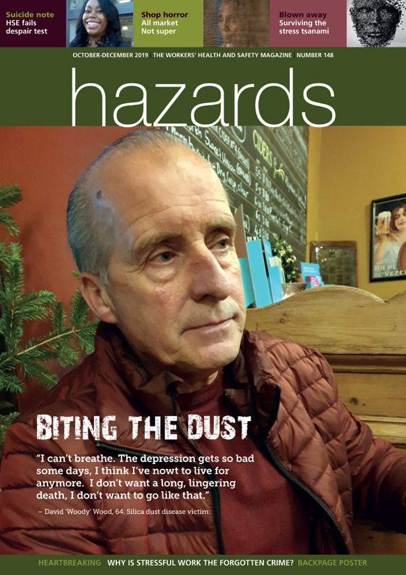 The Health and Safety Executive maintains its silica dust standard is just fine. Hazards editor Rory O’Neill spoke to former stonemason David Wood, who at 64 can’t work and struggles for breath. He, like hundreds of others who develop deadly silica-related diseases each year, are the undeniable proof HSE has got it dangerously wrong. More