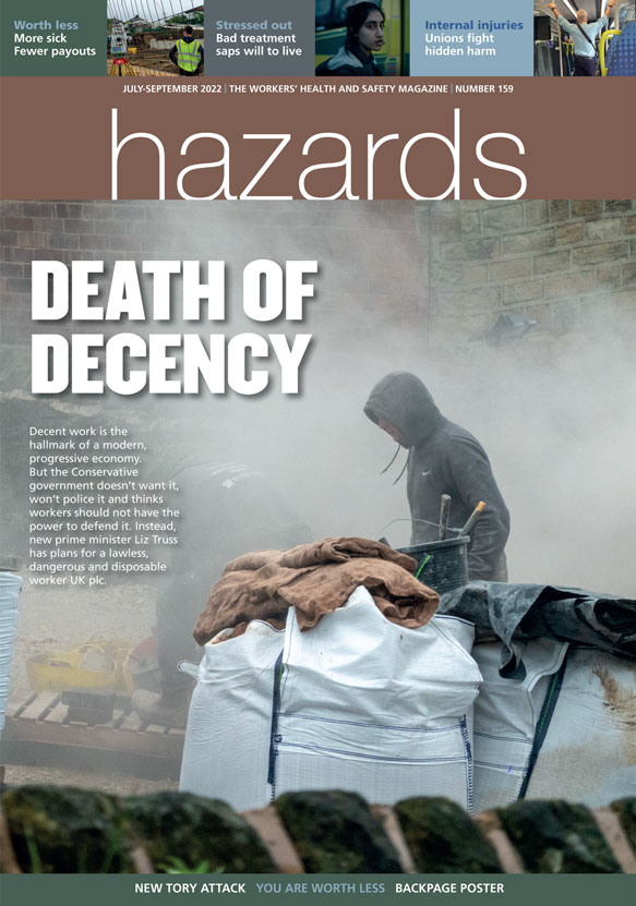 Decent work is the hallmark of a modern, progressive economy. But the Conservative government doesn’t want it, won’t police it and thinks workers should not have the power to defend it. Hazards editor Rory O’Neill spells out how new prime minister Liz Truss is planning for a low paid, lawless and disposable worker UK plc.