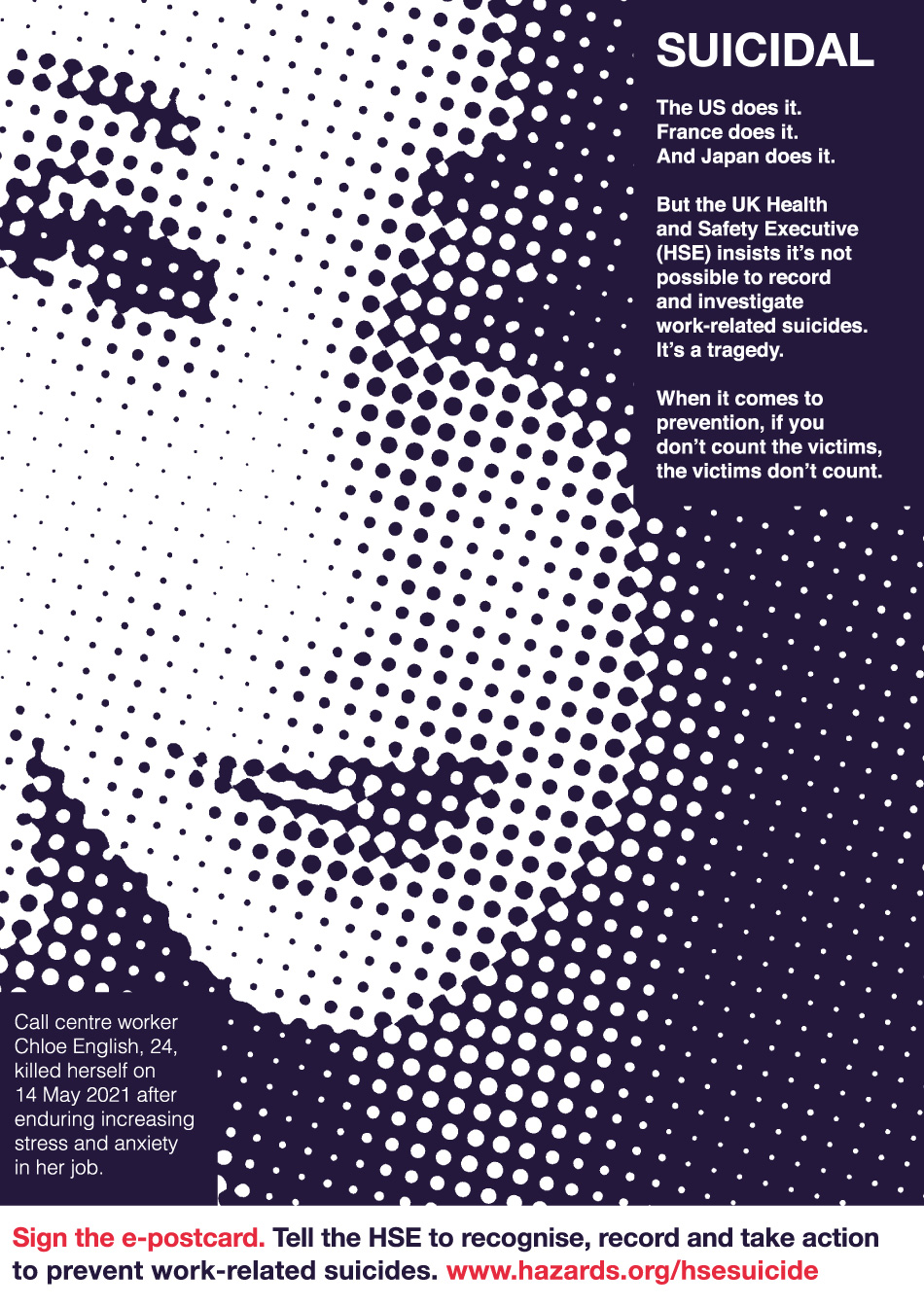The US does it. France does it. And Japan does it. But the UK Health and Safety Executive (HSE) insists it's not possible to record and investigate work-related suicides. It’s a tragedy.