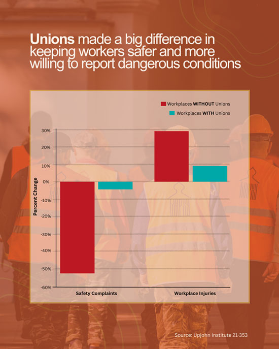 Workplace injuries increased by almost 30 per cent in non-union workplaces, compared to less than 10 per cent in unionised workplaces.