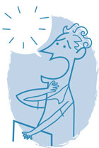 It is important to drink water frequently. Drinking six or eight glasses a day will help to keep the larynx moist, especially in hot dry atmospheres. Keeping a glass of water to hand during lessons will help as will a reduction in caffeine intake. For a mild sore throat, sucking fruit pastilles can help. Strong throat sprays, lozenges etc, which dry the larynx, should be avoided. It is important to rest the voice as much as possible and avoid whispering, as it is stressful for the larynx. Breathing steam rising from hot - but not boiling! - water can also be of benefit. From NUT's Voice care guide. Full