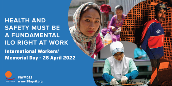 As part of the campaign to secure this recognition, the International Trade Union Confederation (ITUC) is urging unions worldwide to again take up the issue of health and safety as an ILO fundamental right on International Workers’ Memorial Day on 28 April.