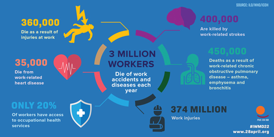 Work is killing 3 million workers worldwide each year. Sharan Burrow, general secretary of the International Trade Union Confederation (ITUC), says that dying to work must end now, and health and safety must be recognised as a fundamental right for all workers.