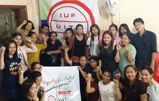 | VISIBLE RESULTS The abuse of hotel workers is no longer hidden behind closed doors. IUF’s high profile campaign has caught the attention of the media, regulators and the major hotel chains. And there have been significant gains. In India, for example, unions developed more confidence to challenge hotel management. And in the Philippines, NUWHRAIN members at Sofitel and Holiday Inn in Manila succeeded in eliminating room quotas and limiting shifts to 8 hours. A group of casual housekeeper employees were moved to permanent contracts with more conversions to permanent status on the way.