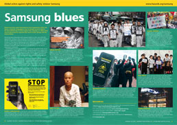 Samsung blues Global electronic giant Samsung has been targeted by safety and labour standards campaigners over its deadly record of abuse. An international day of action against the company on 1 May 2018 saw its bad practices exposed once more in Asia, Europe and the United States. more |