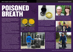Poisoned breath A decade-long campaign led by the daughter of a deceased Canadian uranium miner has led to a major victory for workers struck by Parkinson’s disease after being subjected to aluminium dust inhalation “treatments” in their jobs. Janice Martell tells Hazards how she did it. Hazards 157, 2022 • more |