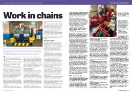 Work in chains Over the last half century, businesses have placed increased reliance on the provision of goods and services from other organisations based in their home countries or overseas. But a process dominated by major cash-rich global companies is failing to deliver safe work, particularly in poorer nations. Hazards 168-9, 2025 • more |